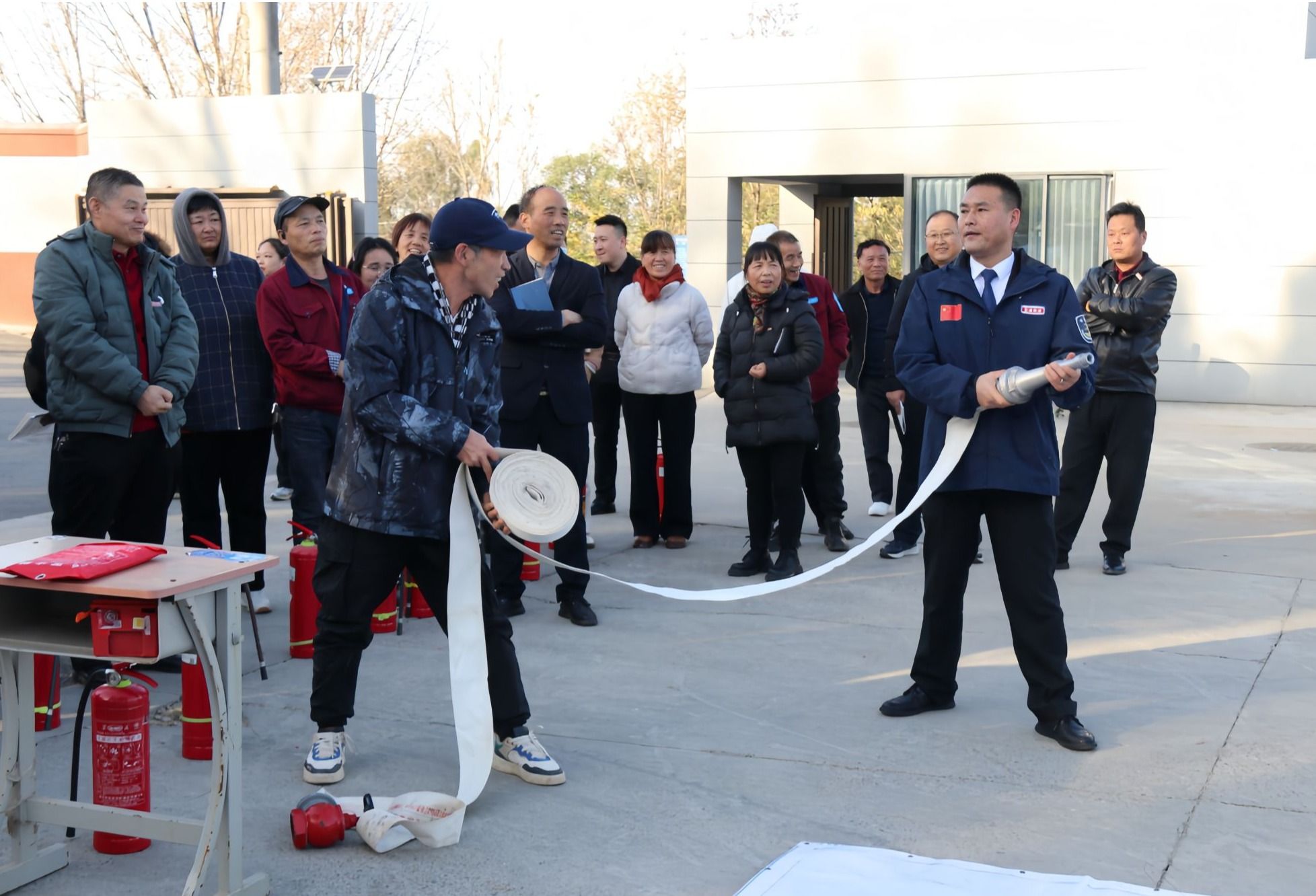 专题培训后,在北墙场地对参训人员进行实操演练,房龙涛现场讲解并示范灭火器、灭火毯、消火栓、消防自救呼吸器操作要求和使用方法,大家熟练掌握灭火器“提-拔-握-压”四步操作法,在模拟油盆火场景中实战初期火灾扑救,从而达到了“突发火灾时,消防器材人人都敢用、人人都能用,快速扑灭初期火灾”的效果。