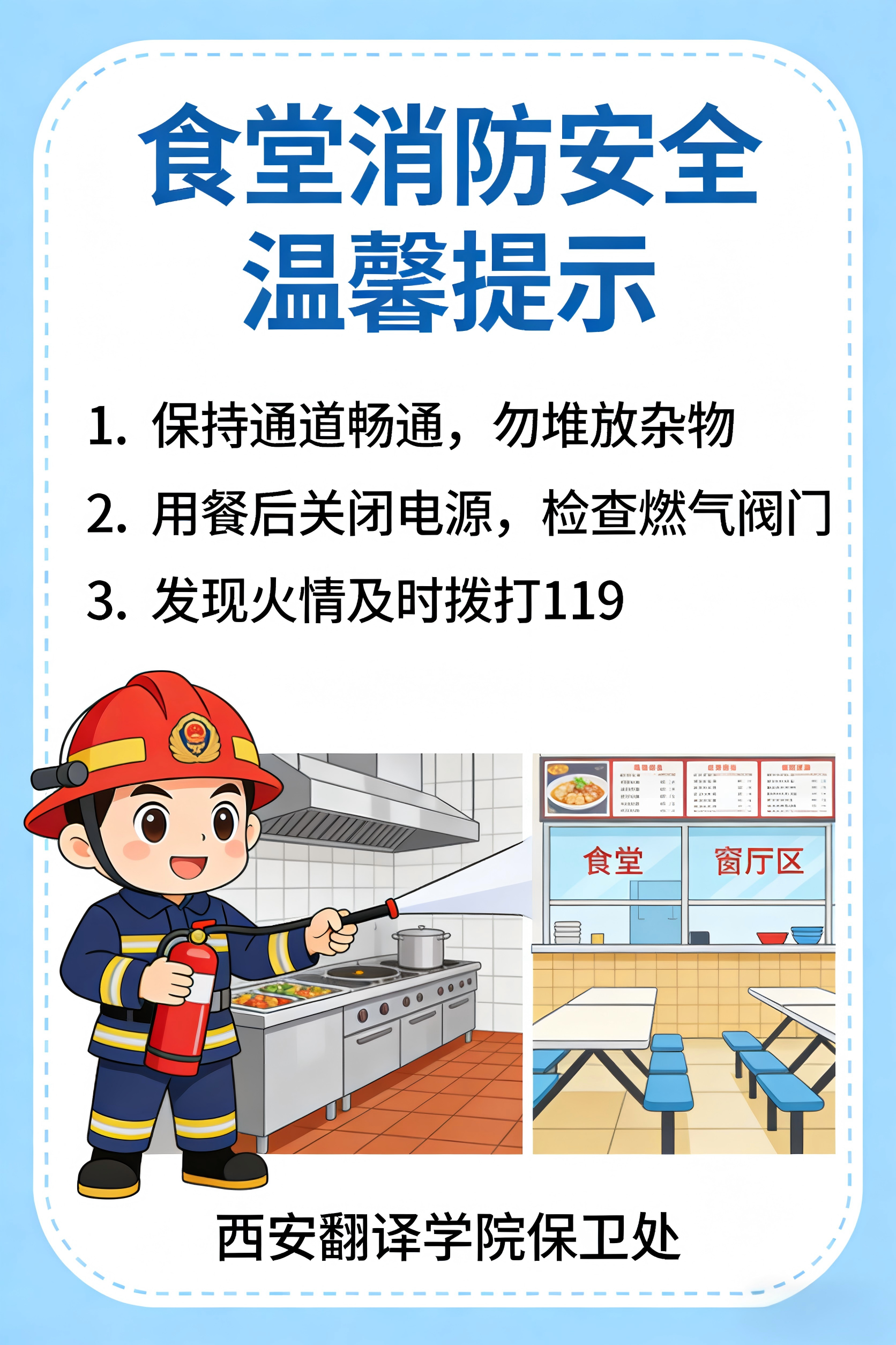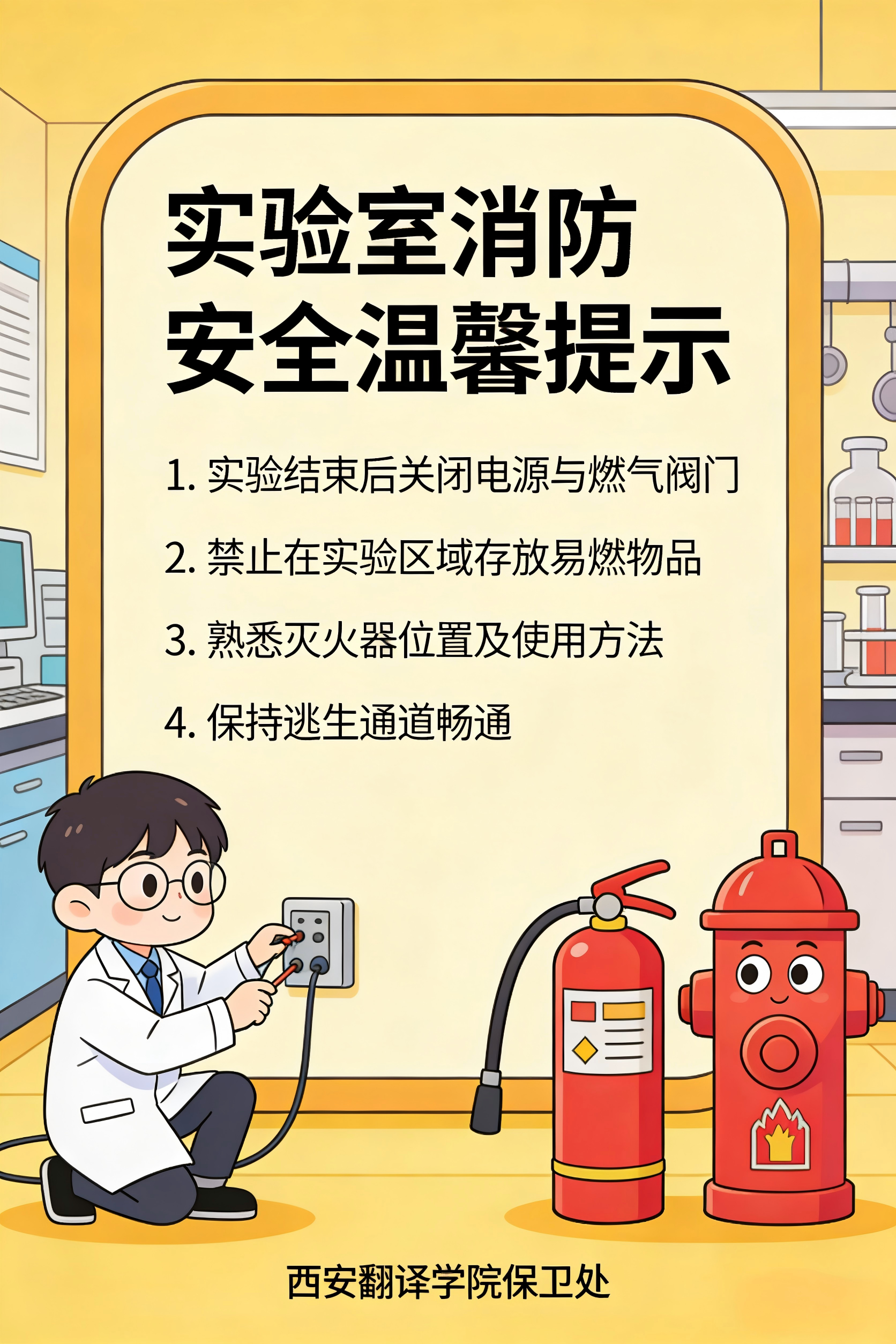 校园是梦想起航的地方,安全是实现美好愿景的基石。在宿舍内,严禁私拉乱接电线及使用违规电器;离开教室、宿舍时,务必切断电源和网络连接。在实验室中,必须严格遵守操作规程;在图书馆和楼道内,不得堵塞消防通道。增强安全意识,减少安全隐患,要始终将安全铭记于心,确保自身平安。祝愿全体学子平安前行,迈向光明未来。
