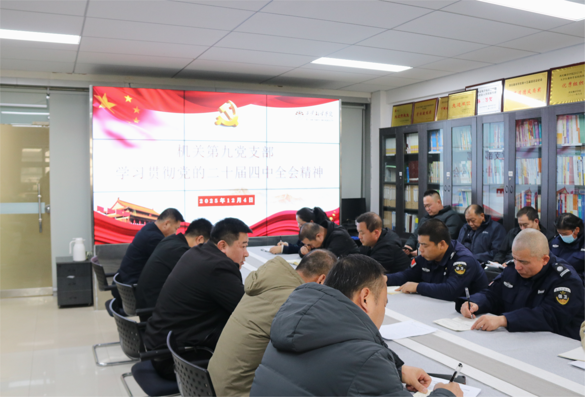 12月4日,机关第九党支部召开支部党员大会。支部全体党员、保卫处科队干部以及校卫队班长参加会议,机关党委书记、保卫处处长张金鹏出席此次会议,会议由支部书记、保卫处副处长胡岳主持。会议严格依照组织程序,对接收预备党员事宜进行了研究讨论。宣传委员马海宁同志组织参会人员深入学习了《在发展中固安全,在安全中谋发展——论学习贯彻党的二十届四中全会精神》理论文章,并集体观看了《向宏伟目标持续奋进》专题教育视频。